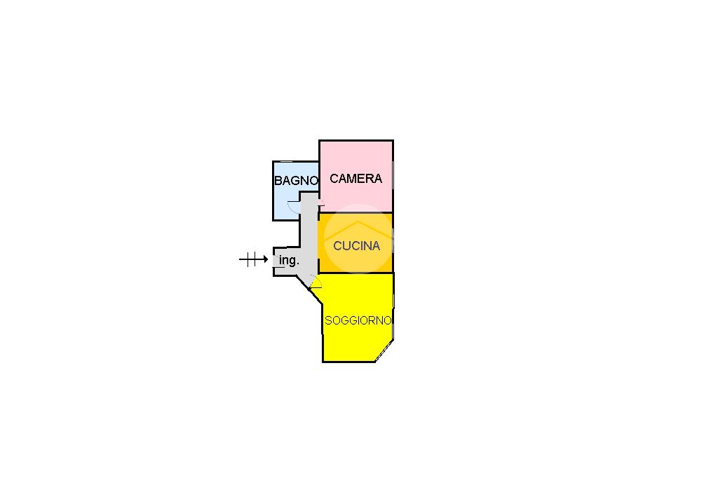 È così composto: ingresso, salotto, cucina abitabile, camera matrimoniale, bagno finestrato con zona lavanderia. Gli infissi sono in doppio vetro.